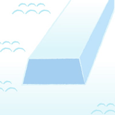 三角形状の正面から飛んでサイドの斜面に着地するアイテム。難易度は高め。