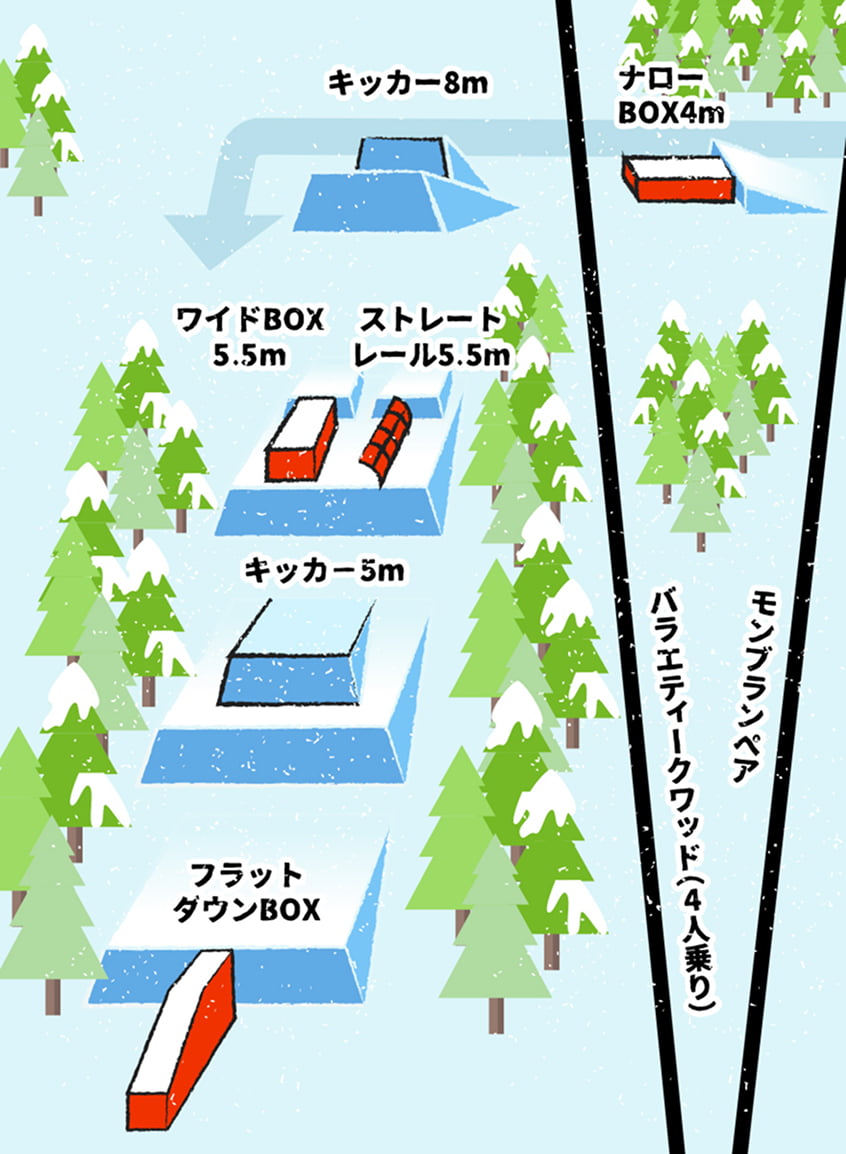 雪面が波のように続くアイテム。変化のあるアップダウンが楽しめます。