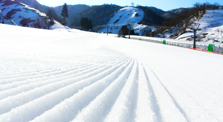 朝一番のバーンは滑走ラインがくっきりと残ります。スピードを出して気持ちよく滑るもよし、雪質をしっかりと確かめながら滑らかなバーンを体感するもよし!