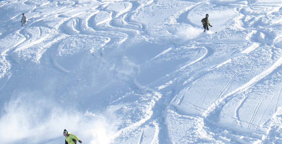 滑りましょう!パウダースノーを滑るには、止まる・曲がる・スピードダウンの基本は自在にできるようになっておきましょう。整地できちんとスピードコントロールしたターンができるレベルに達しておくことが大切です。