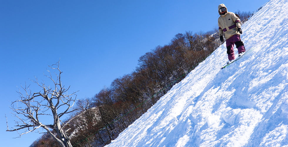 最大斜度46度の最上級者向けバーン!雄大な自然の山から滑り落ちるような急斜面を滑走する爽快感は、他のコースでは味わうことのできない、このコースだけの特別な魅力!新雪が降れば最高のパウダー滑走も楽しむことができます!