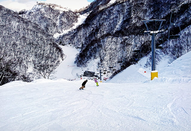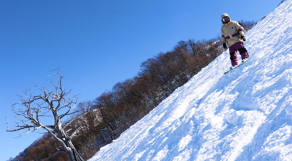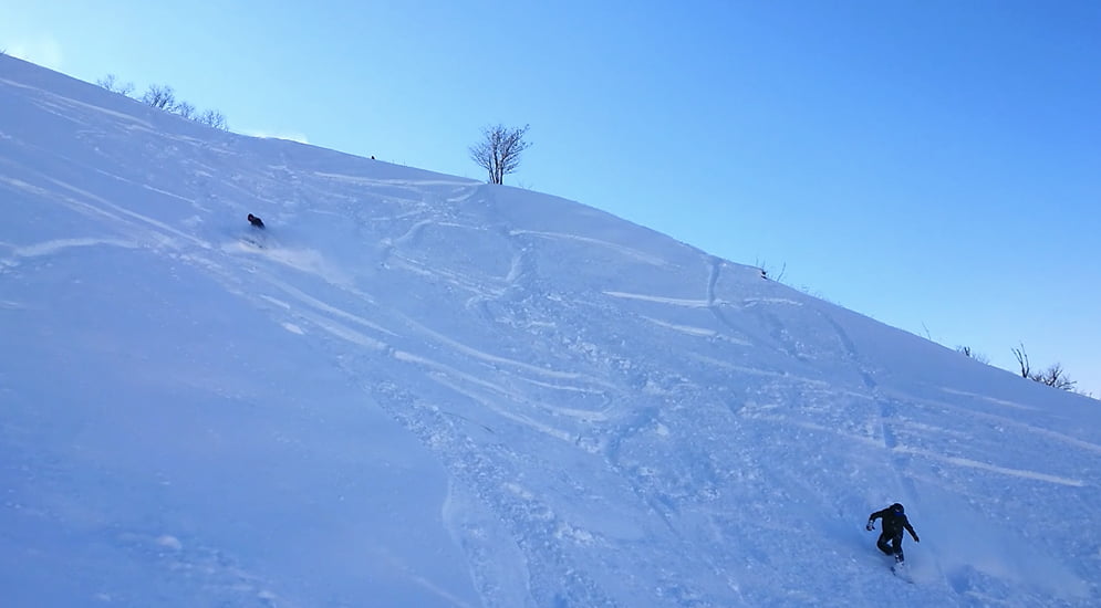 新雪が降れば関西とは思えないような最高のパウダースノーが楽しめます!山の尾根に沿って新雪をたっぷりと楽しみましょう!