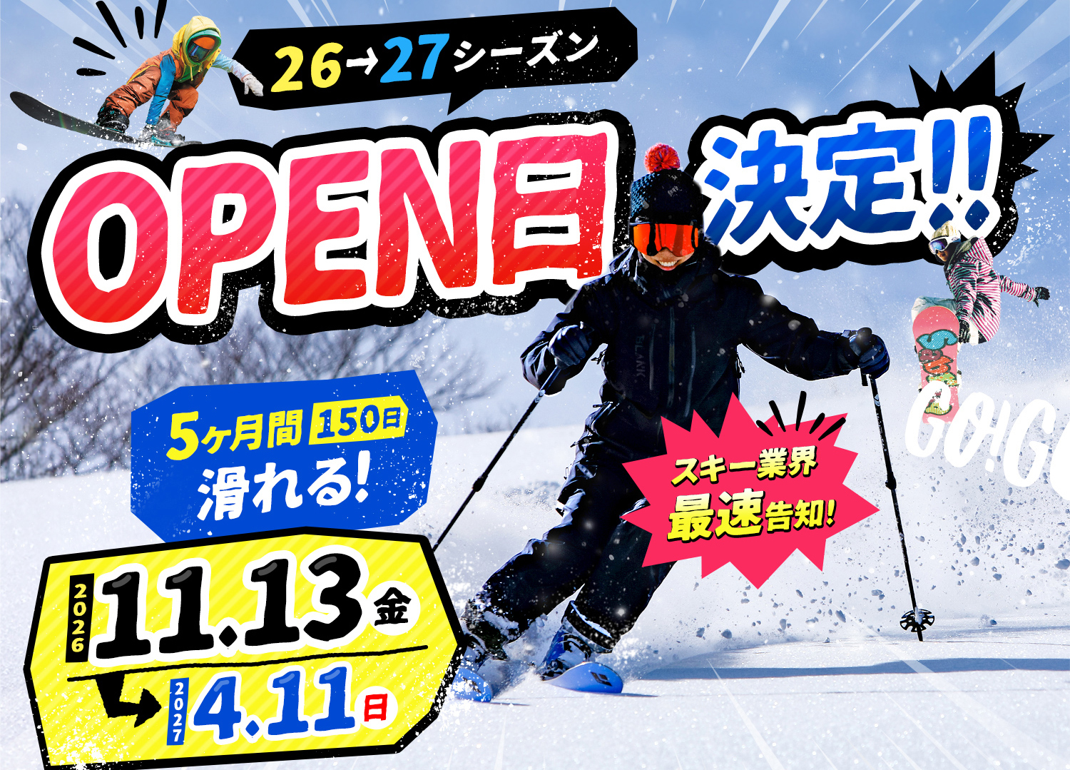 来シーズンの「スキー場オープン」は「過去最速」となる「11月13日(金)」~「4月11日(日)」まで「5ヵ月間」「150日間」の「営業決定」!!