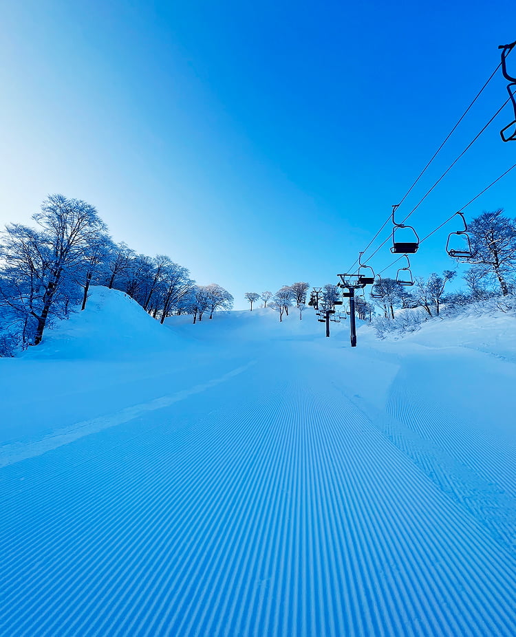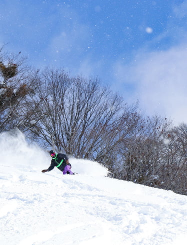 新雪が降れば関西とは思えないような最高のパウダースノーが楽しめます!山の尾根に沿って新雪をたっぷりと楽しみましょう!