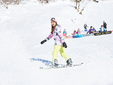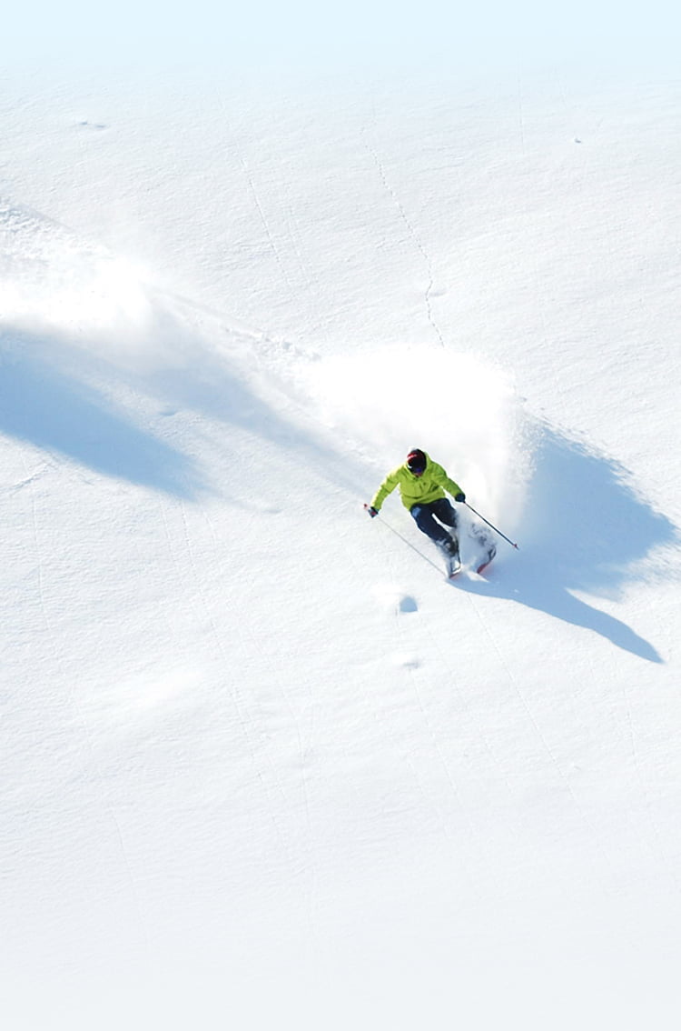 滑りましょう!パウダースノーを滑るには、止まる・曲がる・スピードダウンの基本は自在にできるようになっておきましょう。整地できちんとスピードコントロールしたターンができるレベルに達しておくことが大切です。