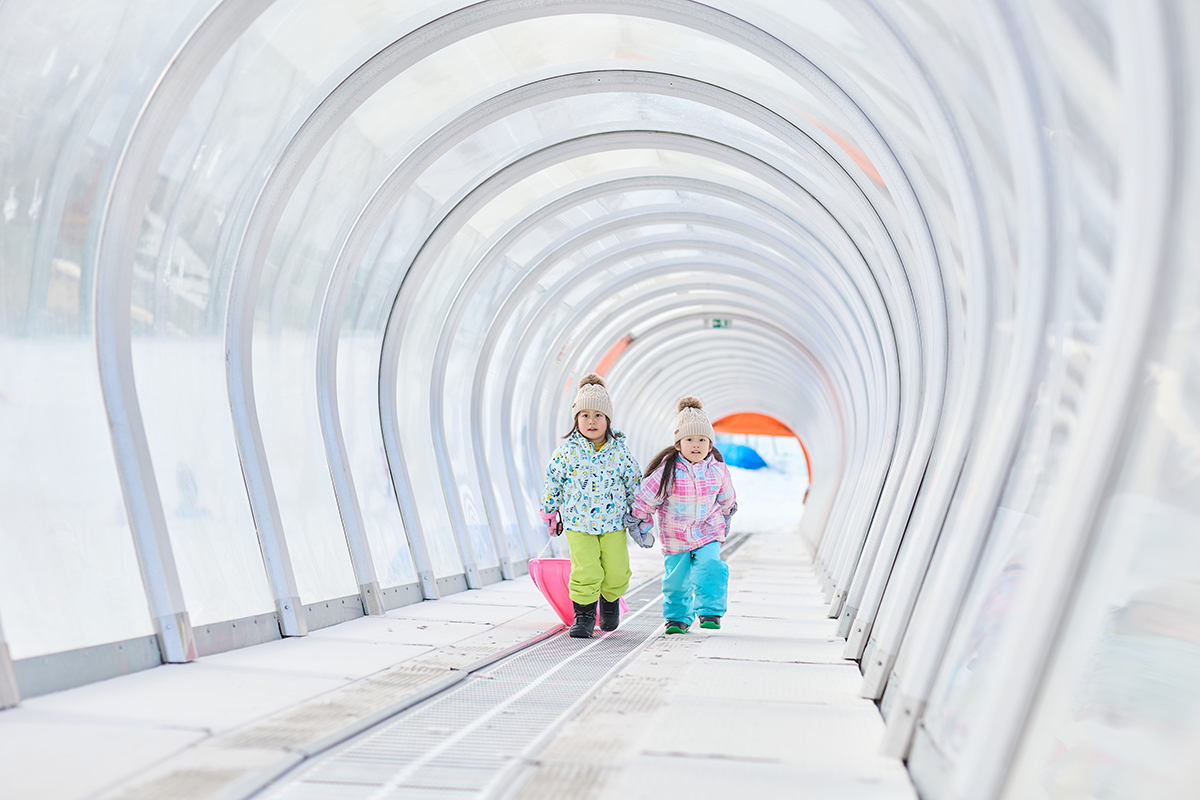 「日本最大級のキッズパーク」オープン!!「雪遊び」「そり遊び」「山遊び」が可能!!トンネル付き動く歩道「オレンジトンネル」も運行開始!!