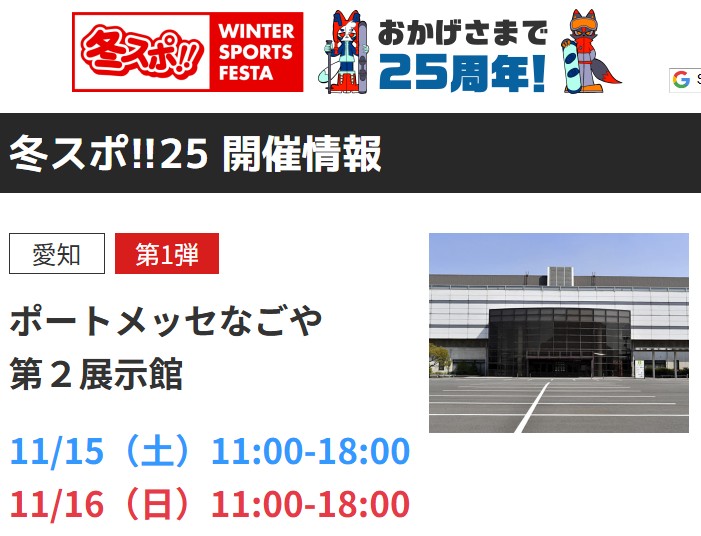 11月15日,16日(土 日)ポートメッセなごや で開催!!「冬スポ!!25」に出展!!
