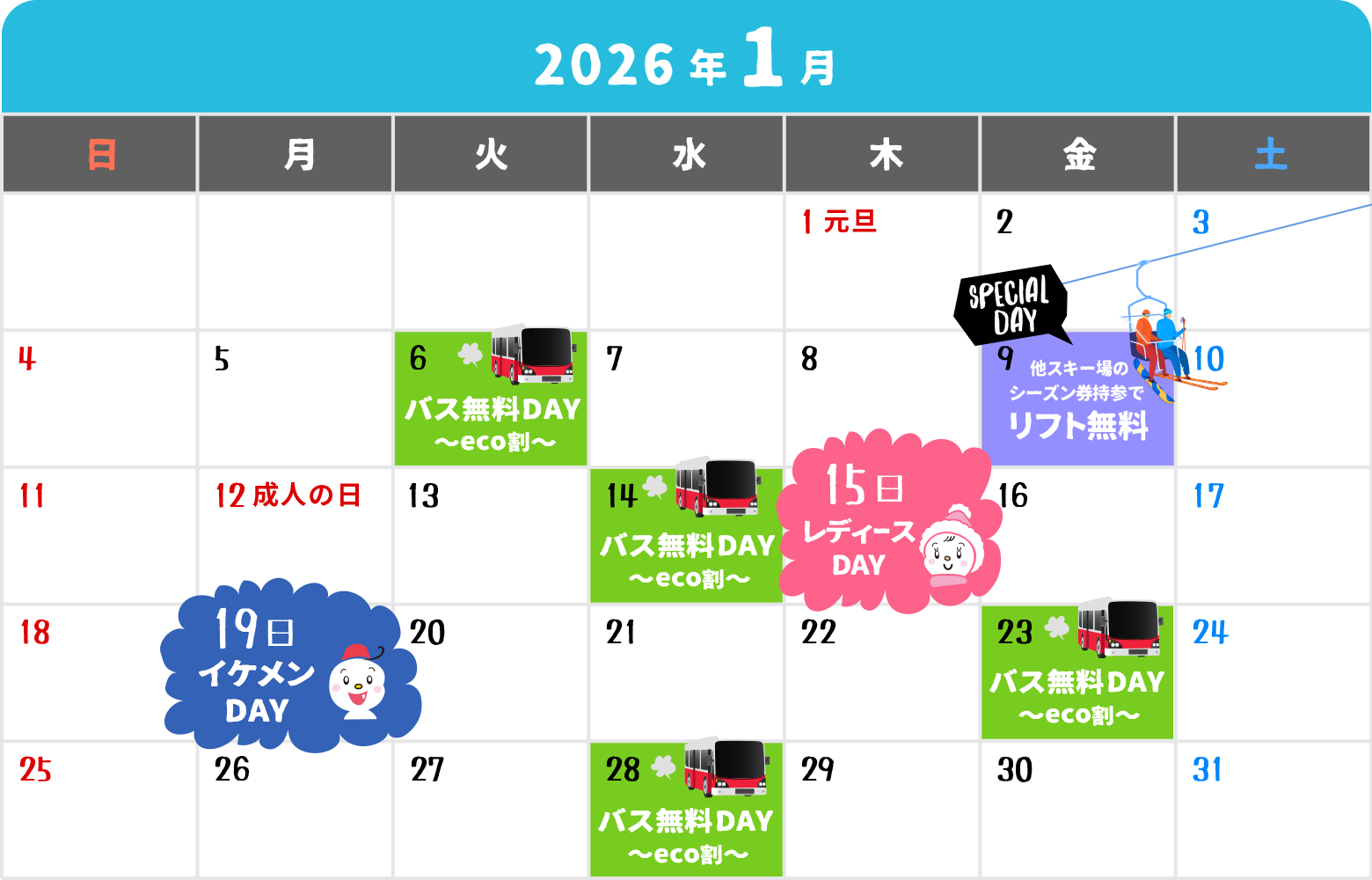 ・1月6日、14日、23、28日「シャトルバス無料」!