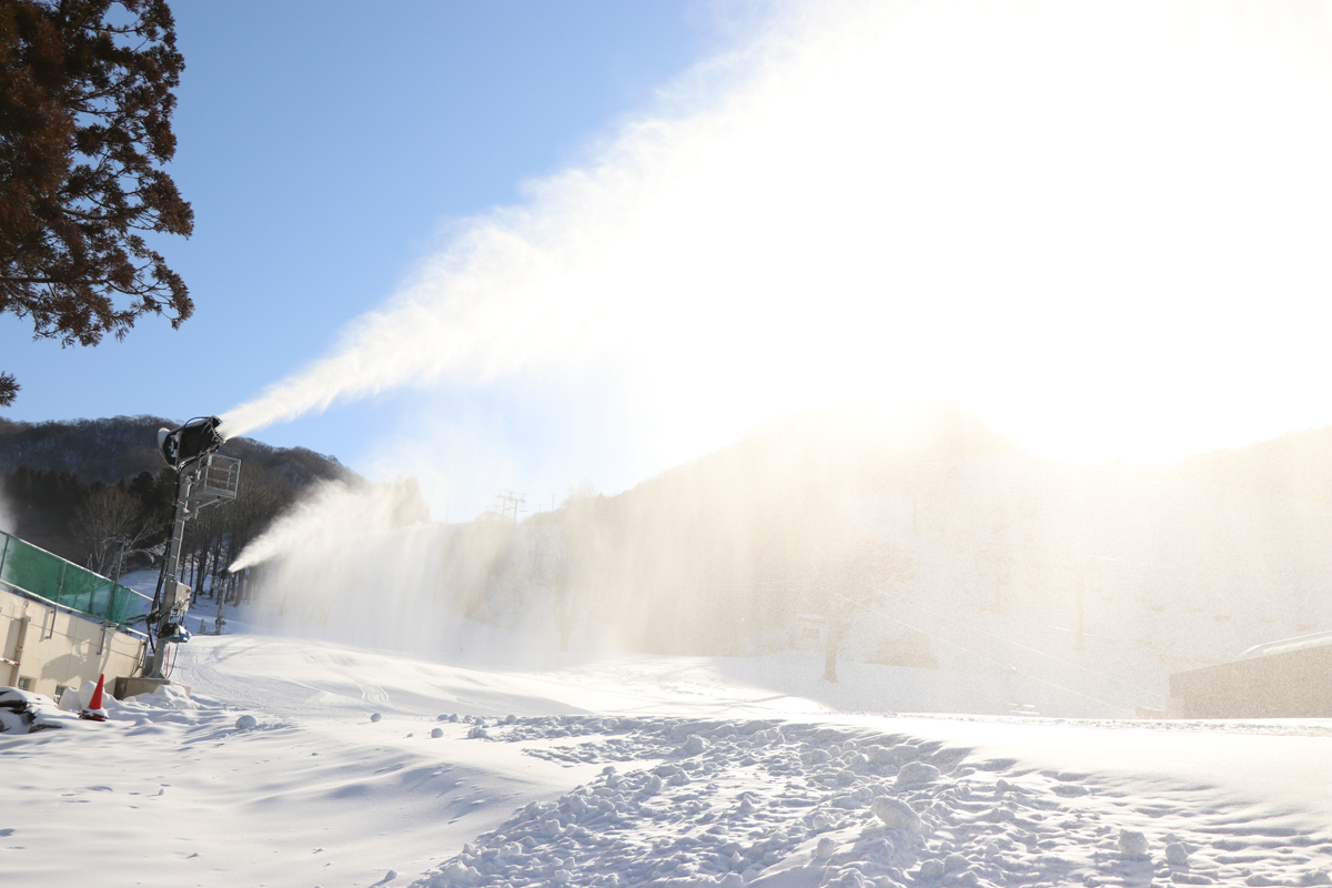 昨シーズン導入した世界的スノーメーカーの「人工造雪機+人工降雪機」の合計「45基」を稼働させて雪造りを行い、早期かつ長期のスキー場営業実現と、近年の暖冬、雪不足への対策を進め、利用者の快適な滑走環境を整えます。