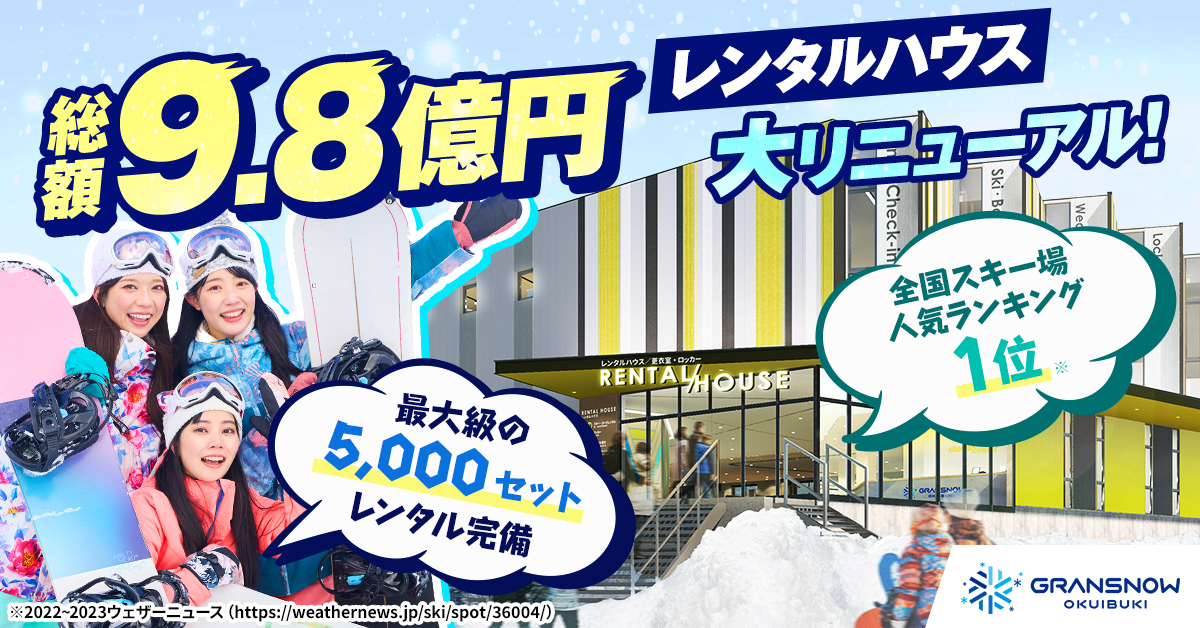 【【西日本最速&最長】11月14日〜4月12日のスキー場オープン!「1日525トンの人工造雪」で「秋から春」まで「紅葉も見ながら滑れる」「関西最大級のスキー場」グランスノー奥伊吹!総額9.8億円「日本最大級レンタル開業」】