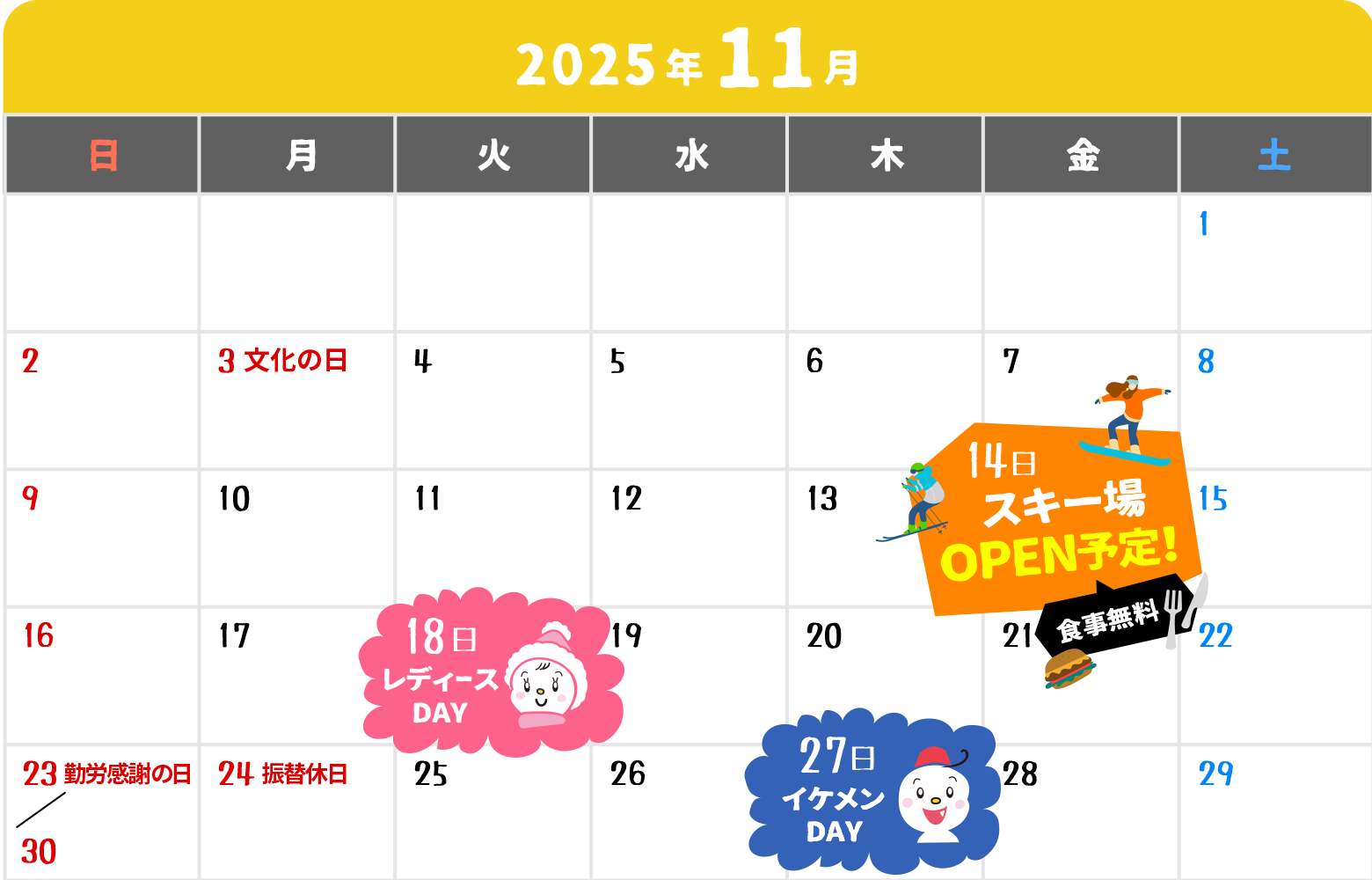 その他、「リフト券の割引イベント」に加えて、「バス無料や食事無料のスペシャルイベント」の実施や「レストランの新メニューの提供」など、今シーズンもお客様に楽しんでいただける仕掛けが盛り沢山。