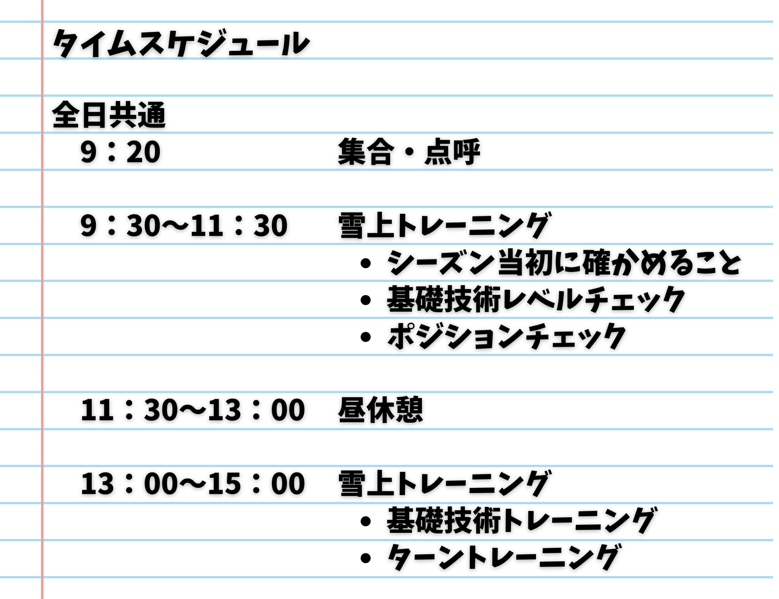 120分×2の雪上トレーニングで内容充実のレッスン!