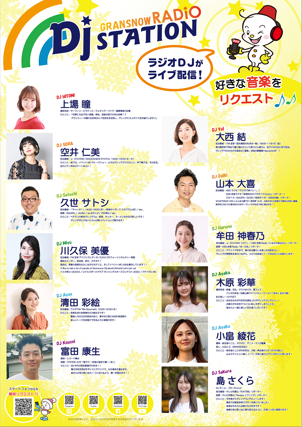 「グランスノーラジオ」のDJメンバーの「出演スケジュールを公開中」!!