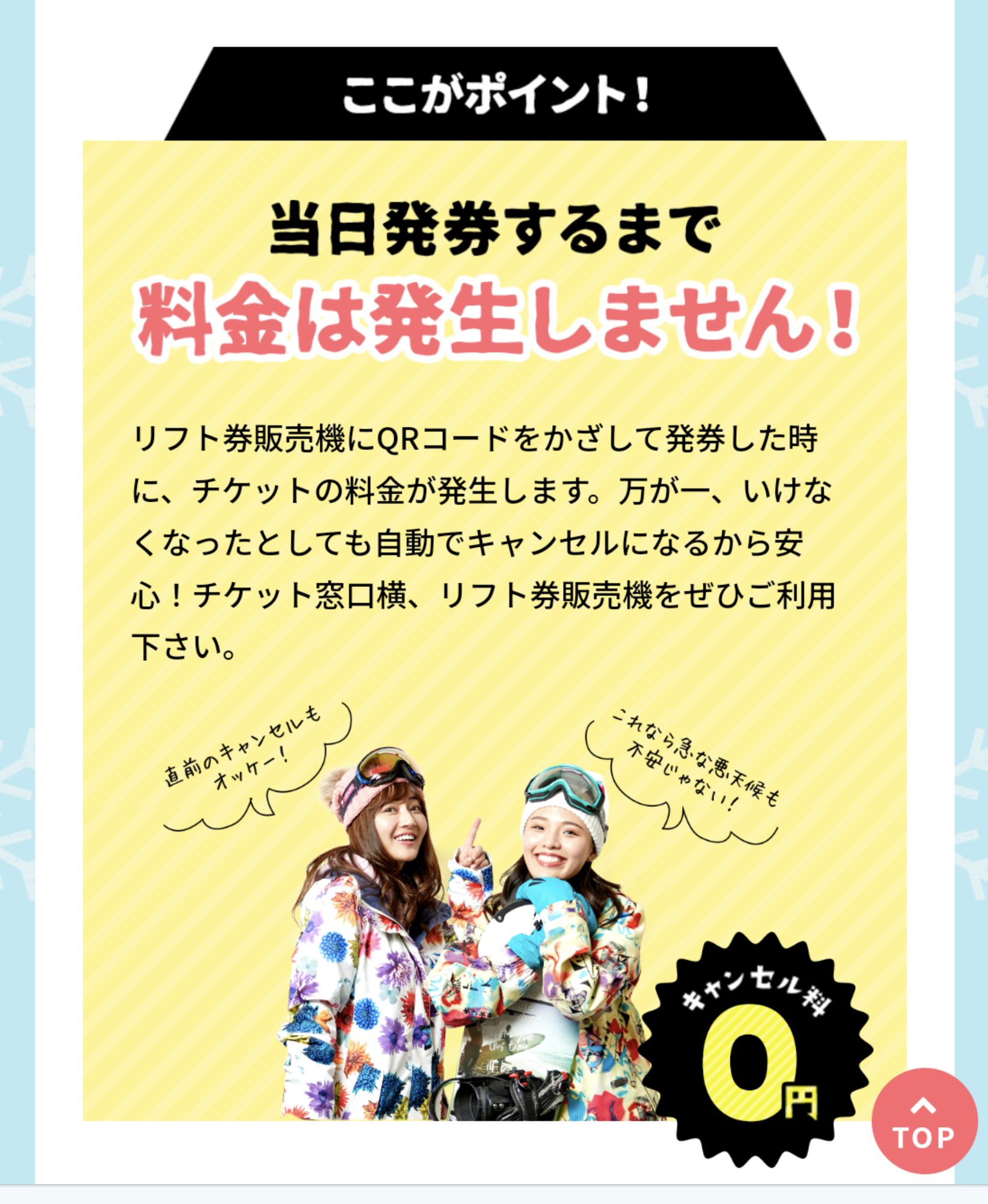 「リフト券・レンタル」は「“キャンセル料も無料”」なので“いつでも気軽に予約できます”