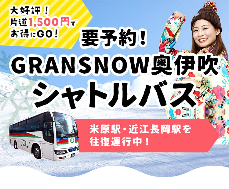 「“超快適スムーズ”なWeb予約受付中」 「リフト券・レンタル・スクール・レストラン席・シャトルバス」まで、こちらのグランスノー奥伊吹の「Web予約」システムでまとめてご予約が可能です!