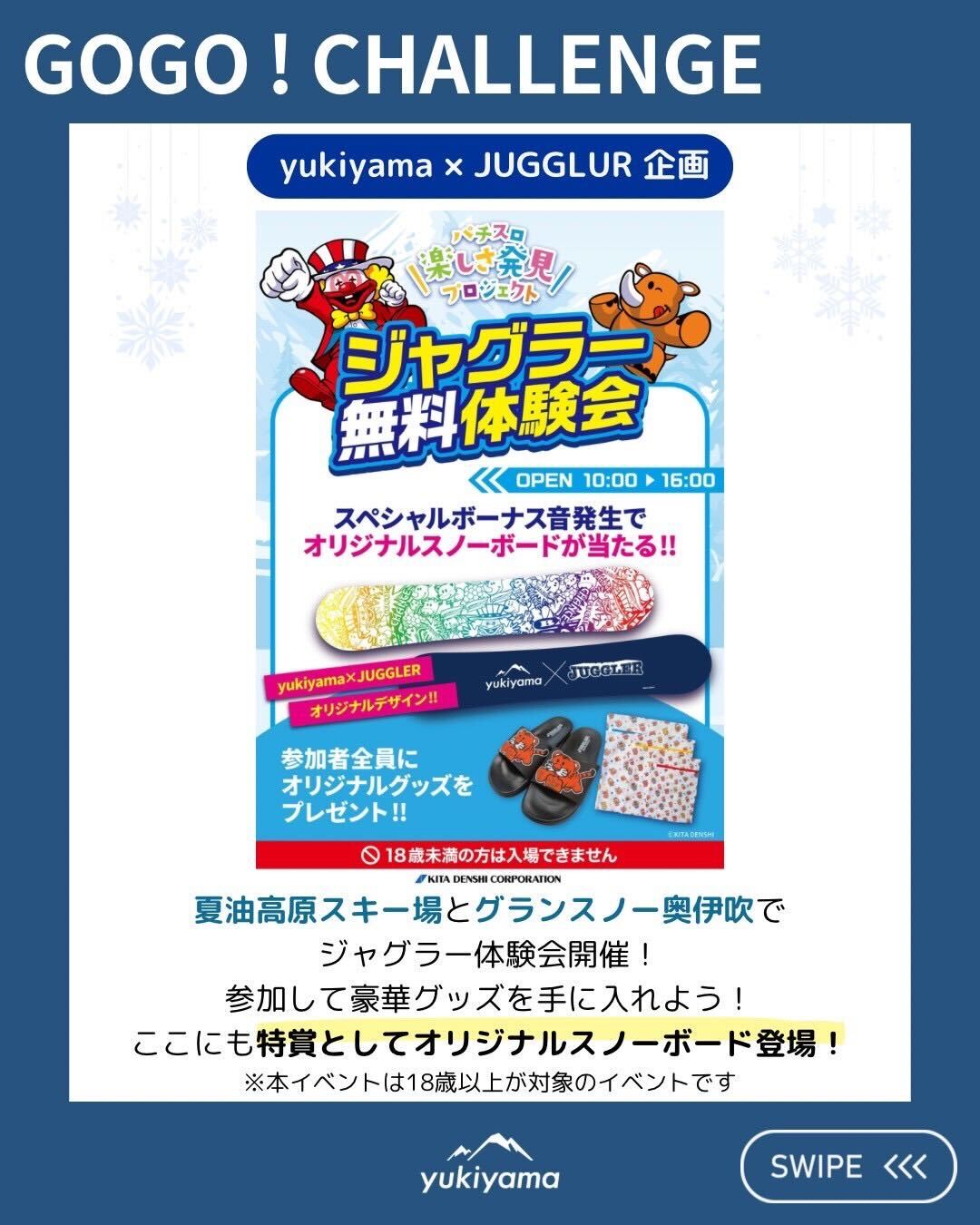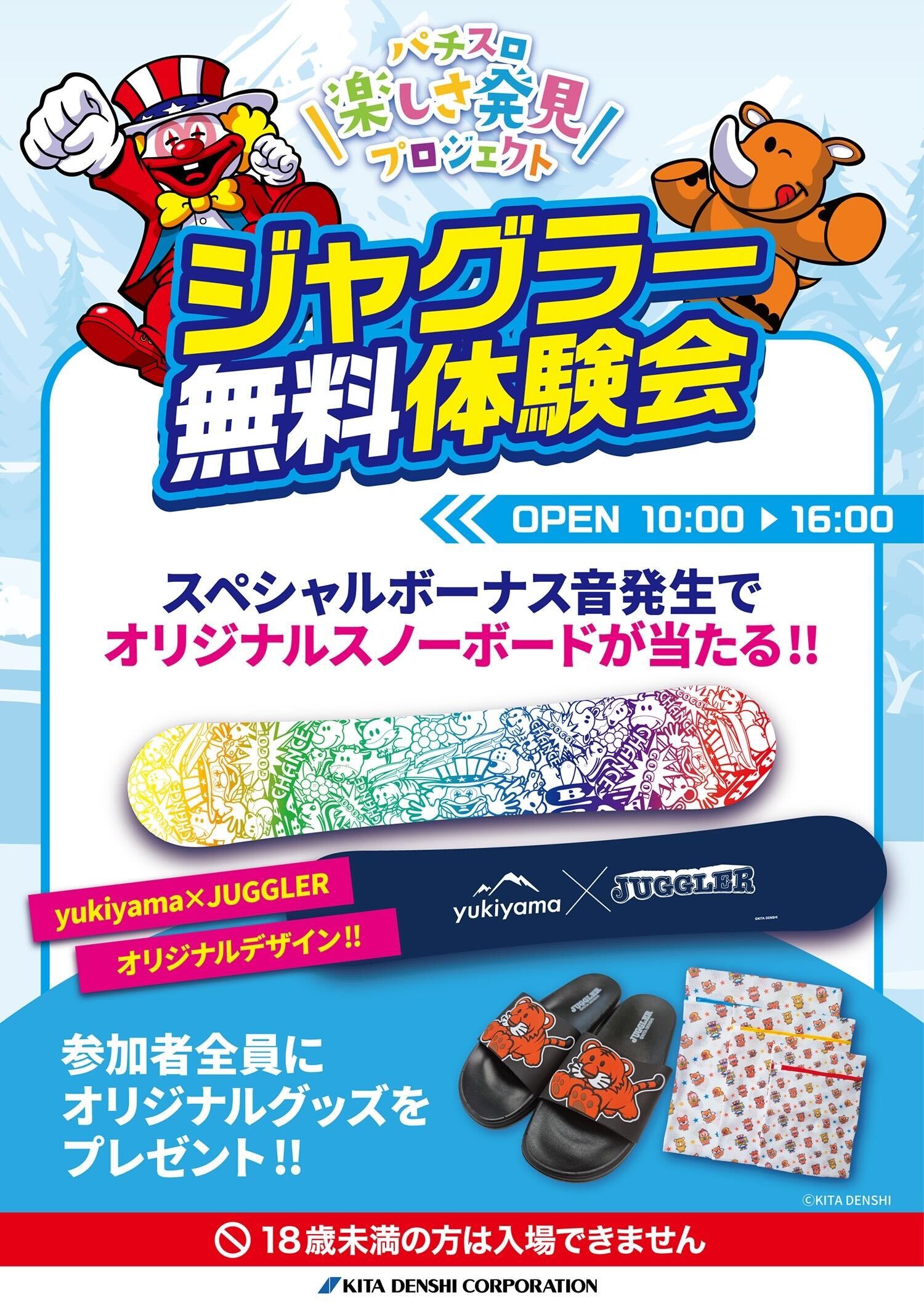 “スペシャルボーナス音発生”で「yukiyama×jugglerコラボ オリジナルスノーボード」も当たります!!